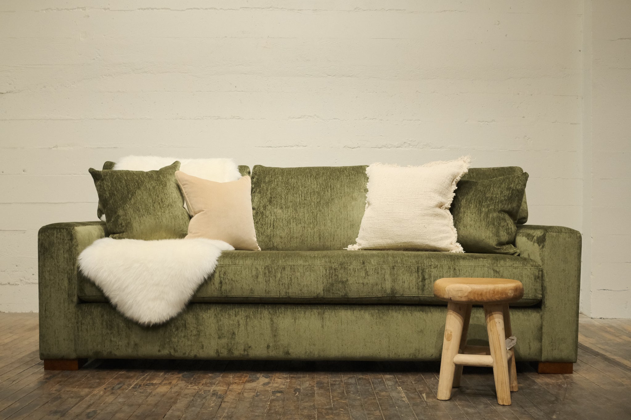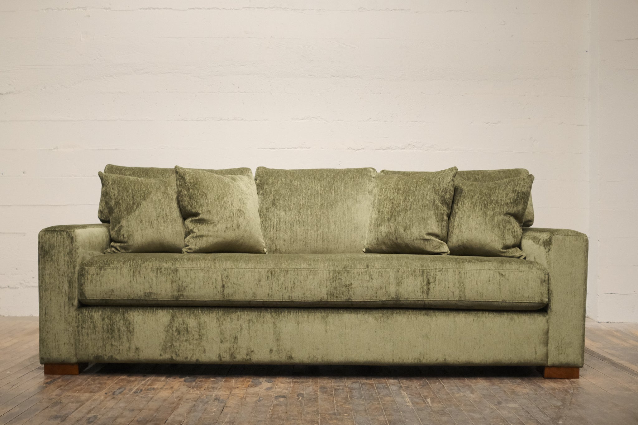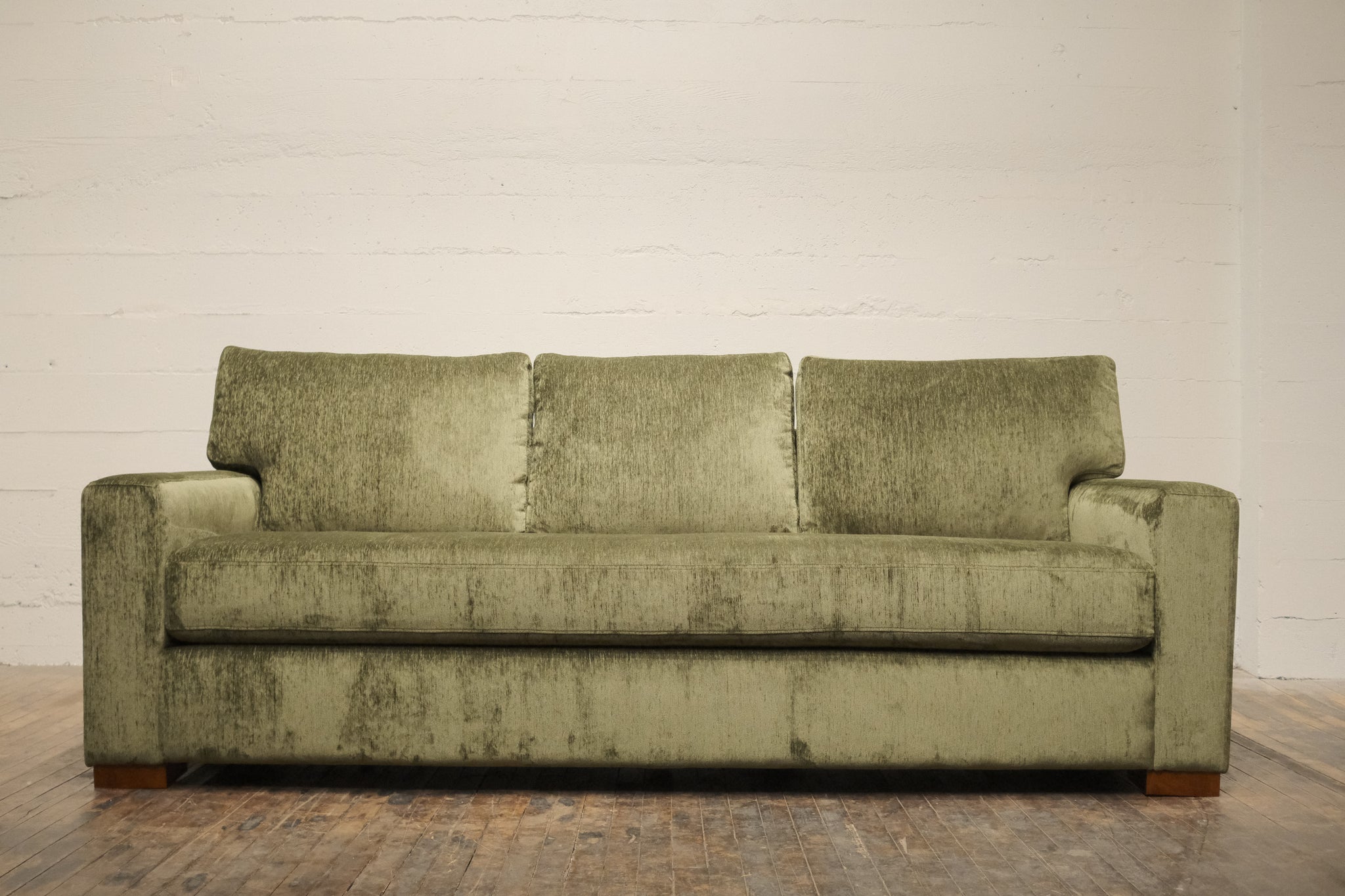Our Soundview Sofa is a sleek, modern piece with a structured yet comfortable design. It features three back cushions and a single long seat cushion, creating a clean, streamlined appearance. The arms are straight and squared with low wooden block feet, contributing to its contemporary silhouette. The sofa combines modern simplicity with classic comfort, making it suitable for stylish living rooms or lounge areas that value both elegance and relaxation.